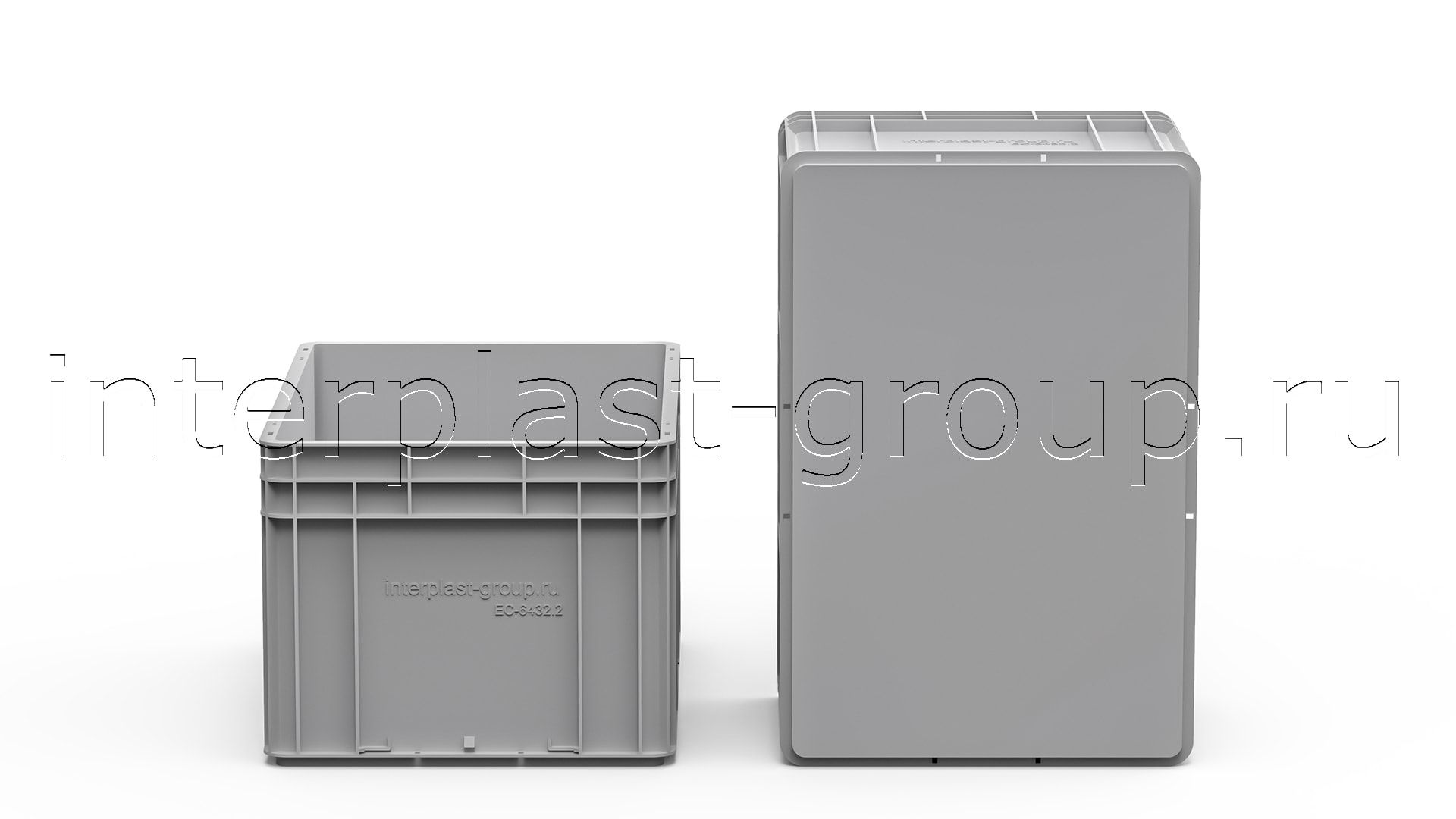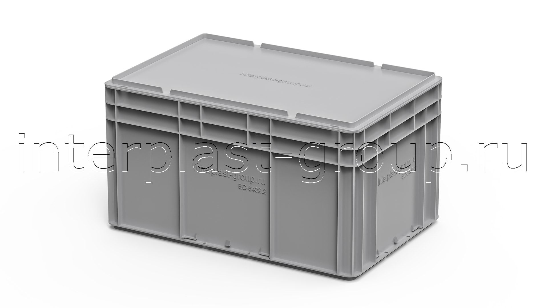 Евроконтейнер закрытые ручки/сплошное дно (серый), 600x400x320 мм