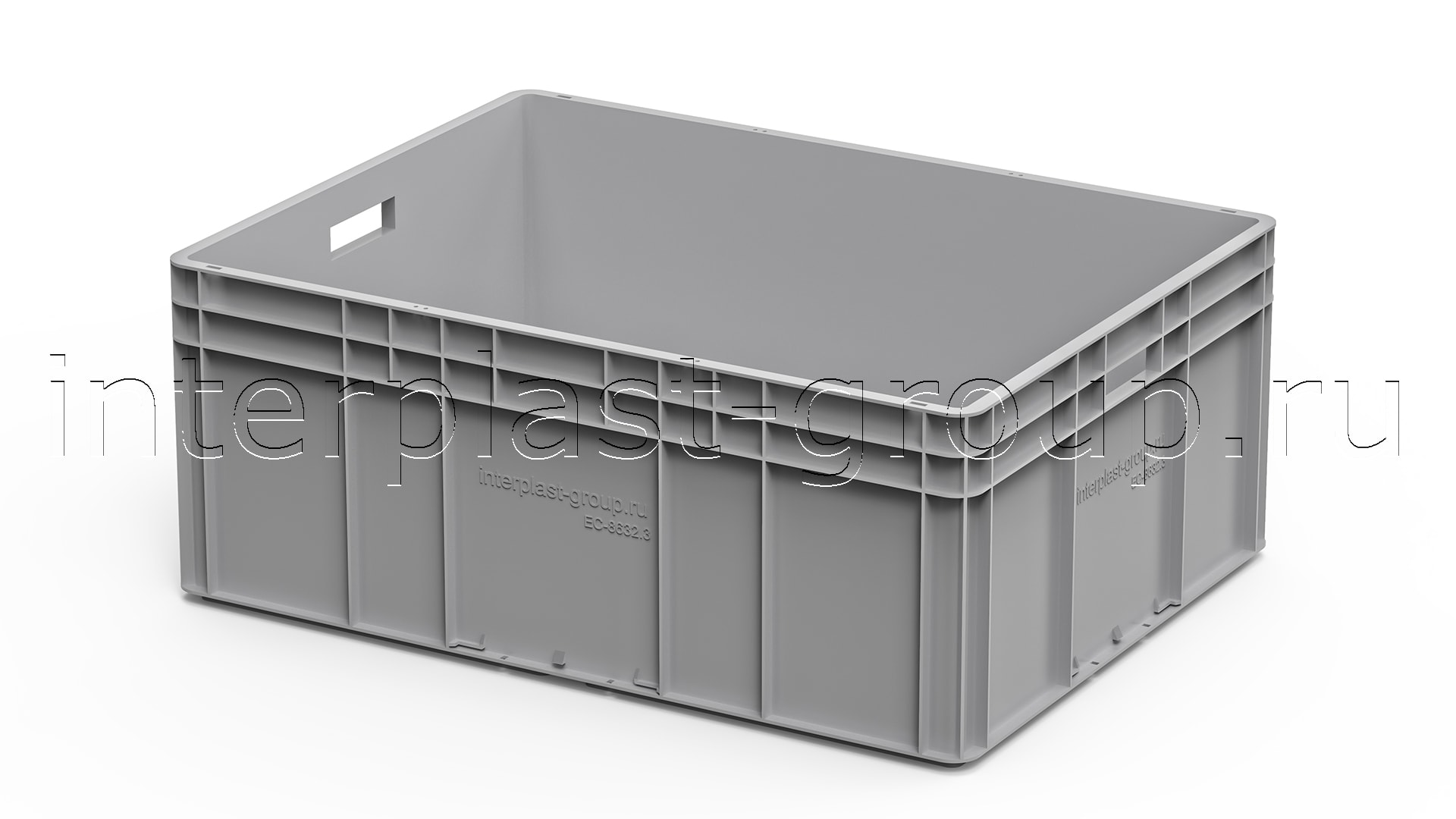Евроконтейнер открытые ручки/усиленное дно (серый), 800x600x320 мм