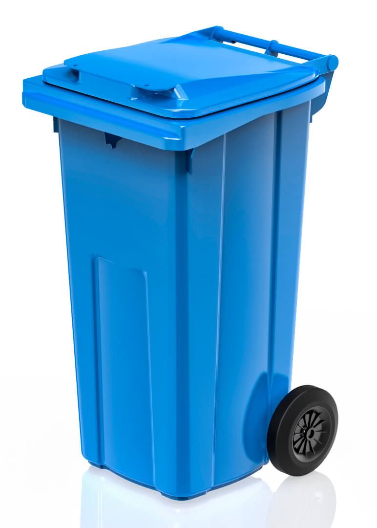Контейнер для мусора 120 л на колёсах с крышкой, синий — для раздельного сбора бумаги и вторсырья