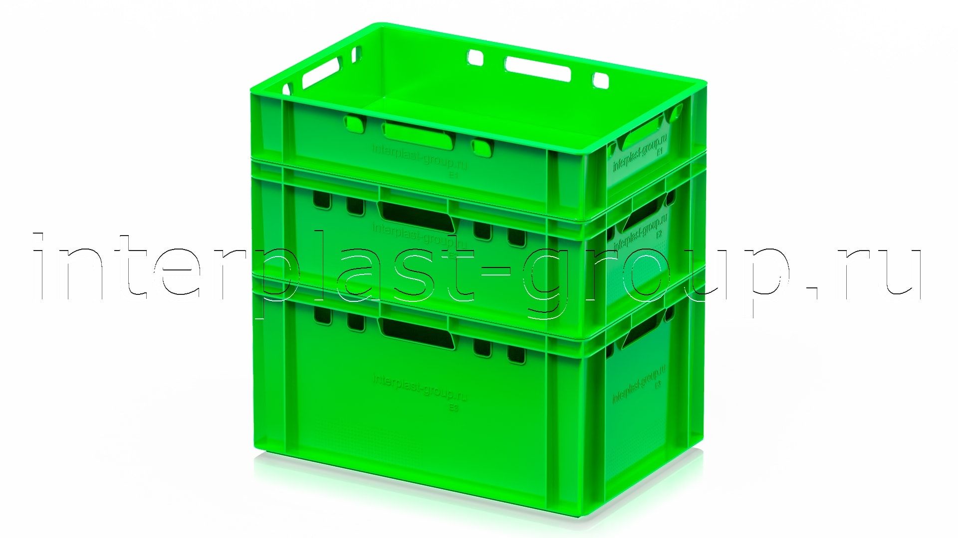 Ящик для мяса Е1 это первый по размеру в линейке мясных ящиков. Разработан специально для использования в мясной промышленности. Отлично штабелируется и собирается в единый сет со всеми ящиками серии. Изготовлен из первичного полиэтилена, и адаптирован для хранения в холодильных и морозильных камерах.
