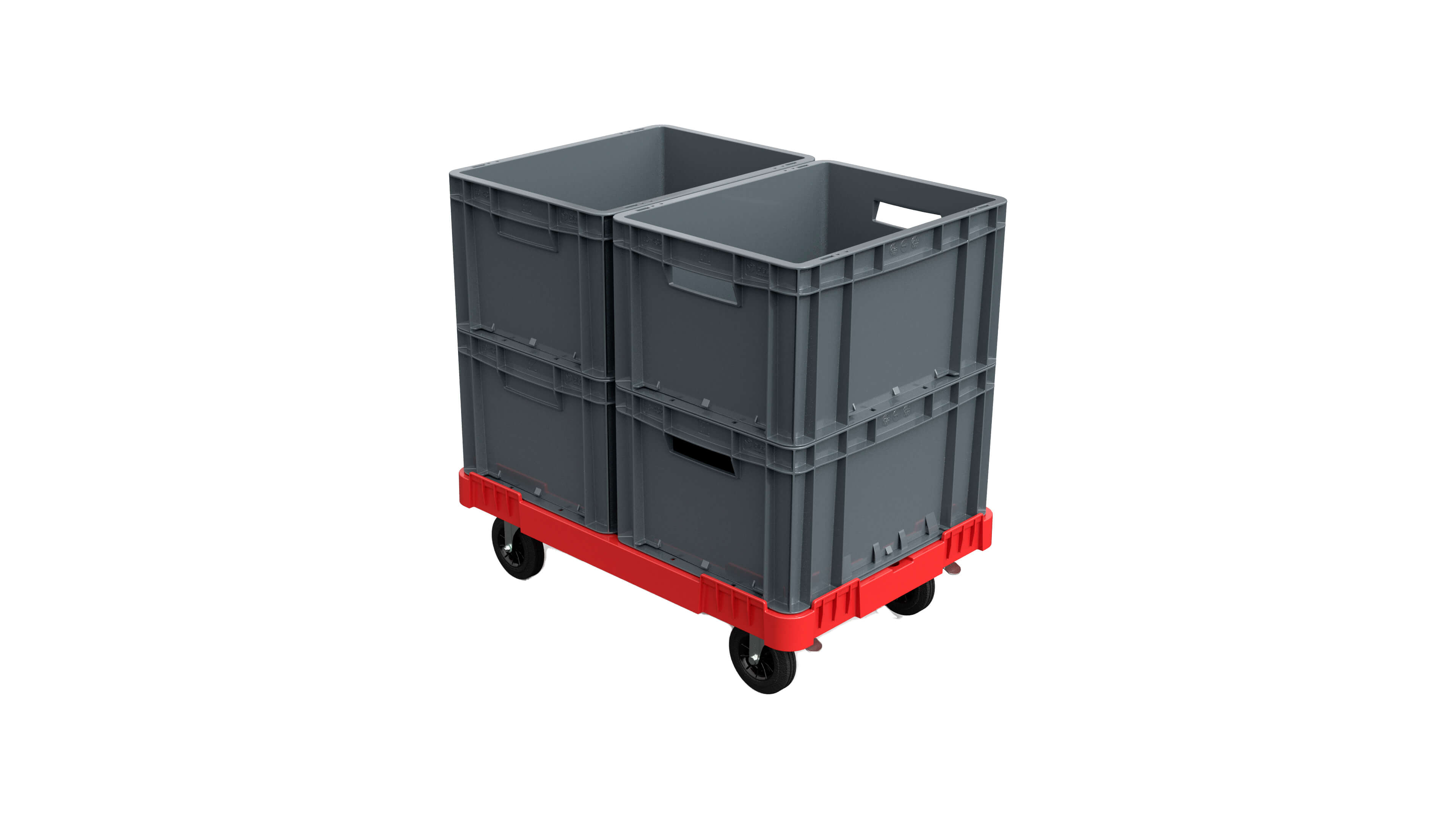 Бортики-ограничители по всем сторонам тележки обеспечивают безопасную фиксацию груза, и, если потребуется, вы сможете установить эту тележку как крышку на контейнер, чтобы оптимизировать использование пространства.